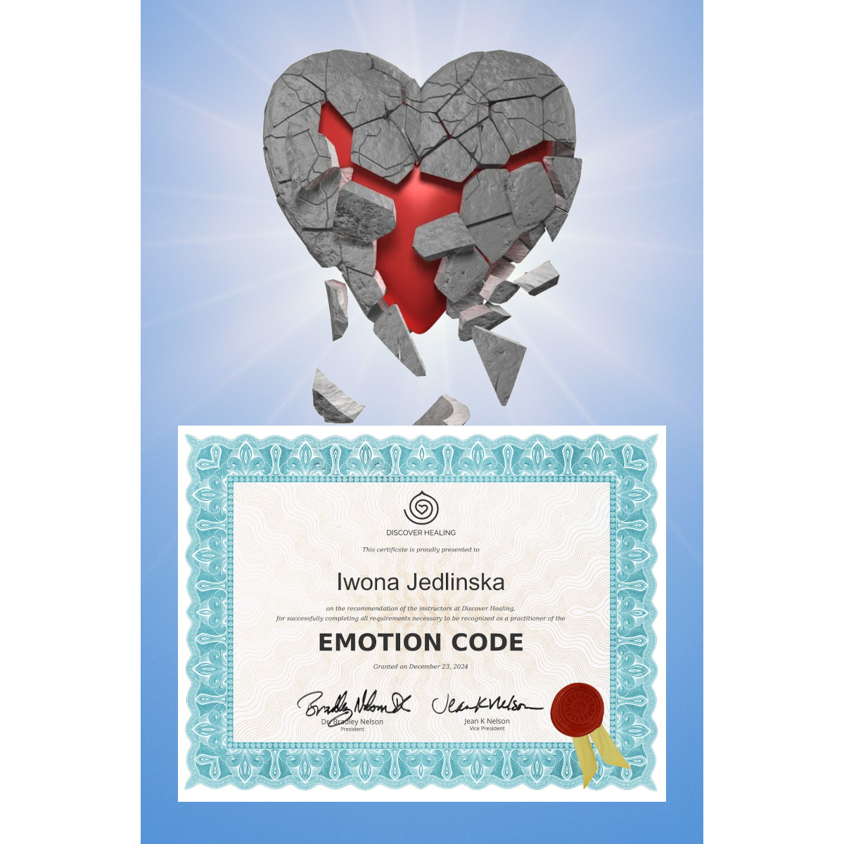 Uwalniam zablokowane emocje z energetycznej ściany serca, zawsze tylko w takim zakresie, w jakim jest to korzystne dla osoby, z którą pracuję.